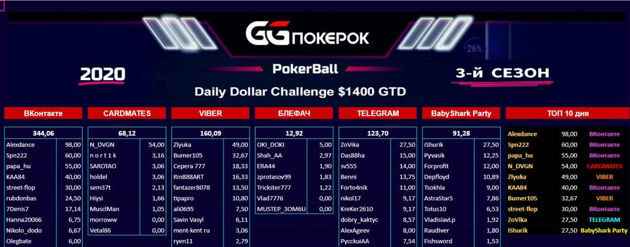 🔥 Вчера стартовал 3 сезон PokerBall на GGPokerOK. Напомним, что в рамках этих игр участники специальных ивентов Daily Dollar Challenge с бай-ином $1,05 разделены на команды.