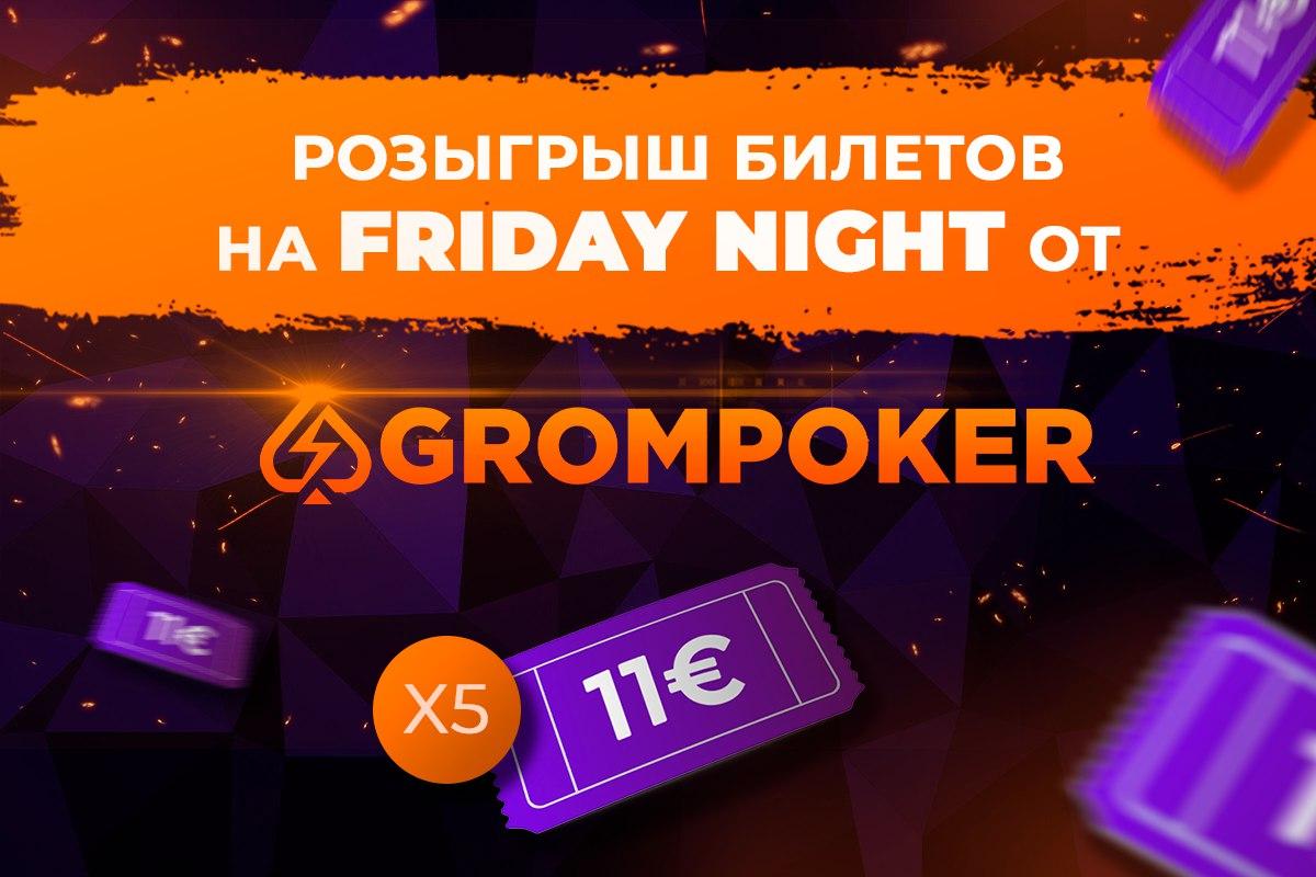 🔥 Итак, на кону 5 билетов на турнир Friday Main в GromPoker c гарантией 73K гривен ($2600)! Не упустите отличную возможность попытать удачу и попробовать игру в новом руме без всяких депозитов.