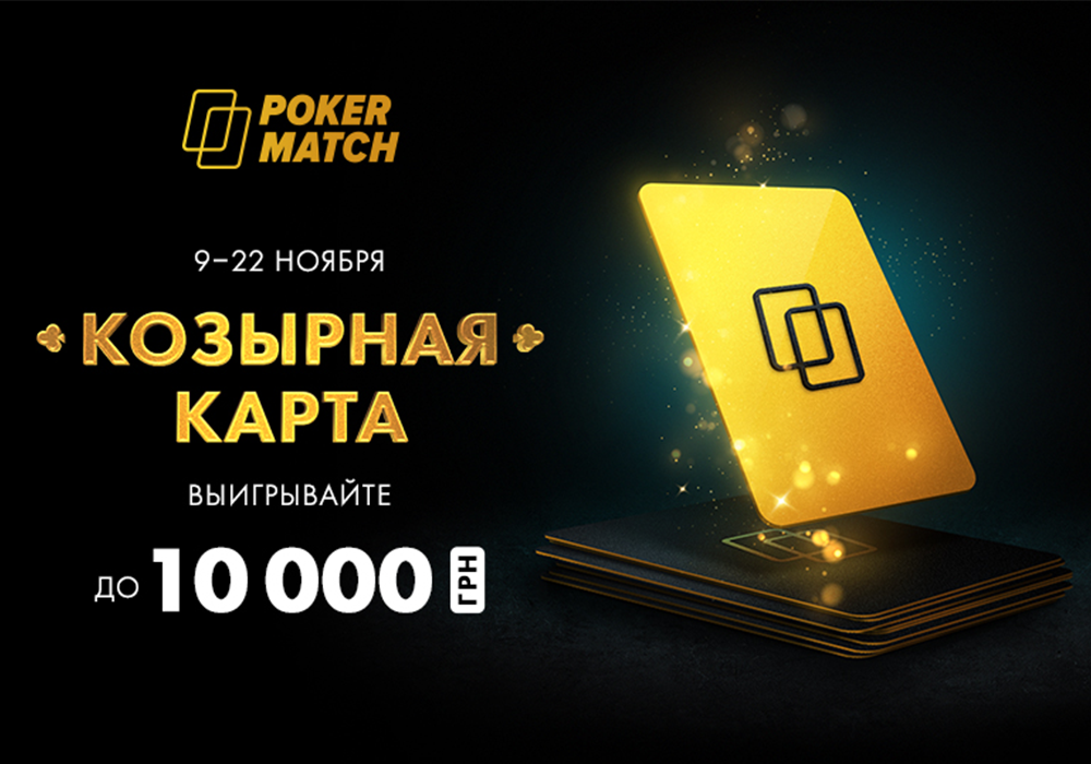 👊 PokerMatch бьет козырем: 9 — 22 ноября в руме пройдет новая акция «Козырная карта», в которой игроки смогут гарантированно получить подарок от 5 до 10.000 гривен!