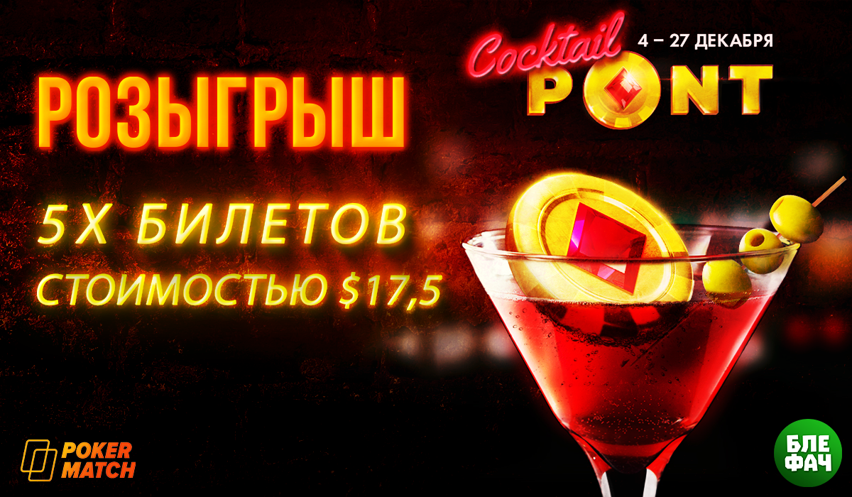 😉 Помните мы обещали разыграть билетики на турнир серии Cocktail PONT на PokerMatch? Наверняка, многие подумали, что мы забыли или может быть зажали? 🤪
