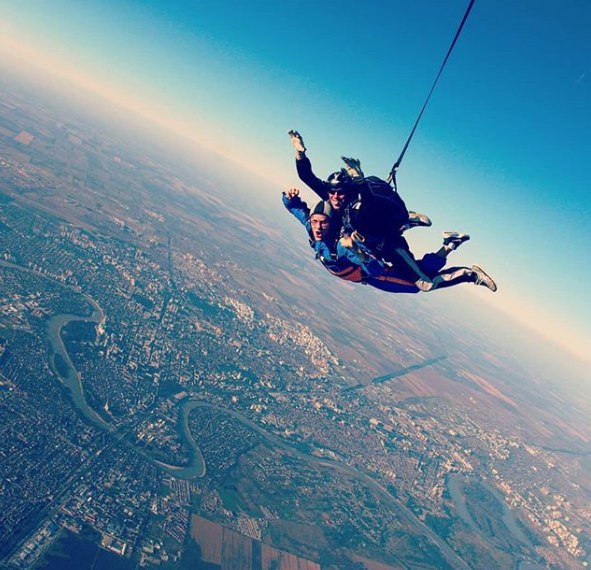 Миша Шаламов рассказал в инстаграме о прыжке с парашутом вместе с женой и маленьким сыном