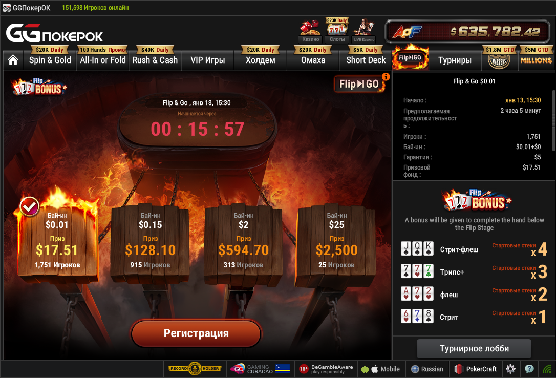 🔥 Вчера, 12 января GGPokerOK запустили новый, уникальный формат турниров под названием Flip&Go. Если в двух словах, то игра представляет собой гибрид шутаут-турниров и традиционных МТТ.