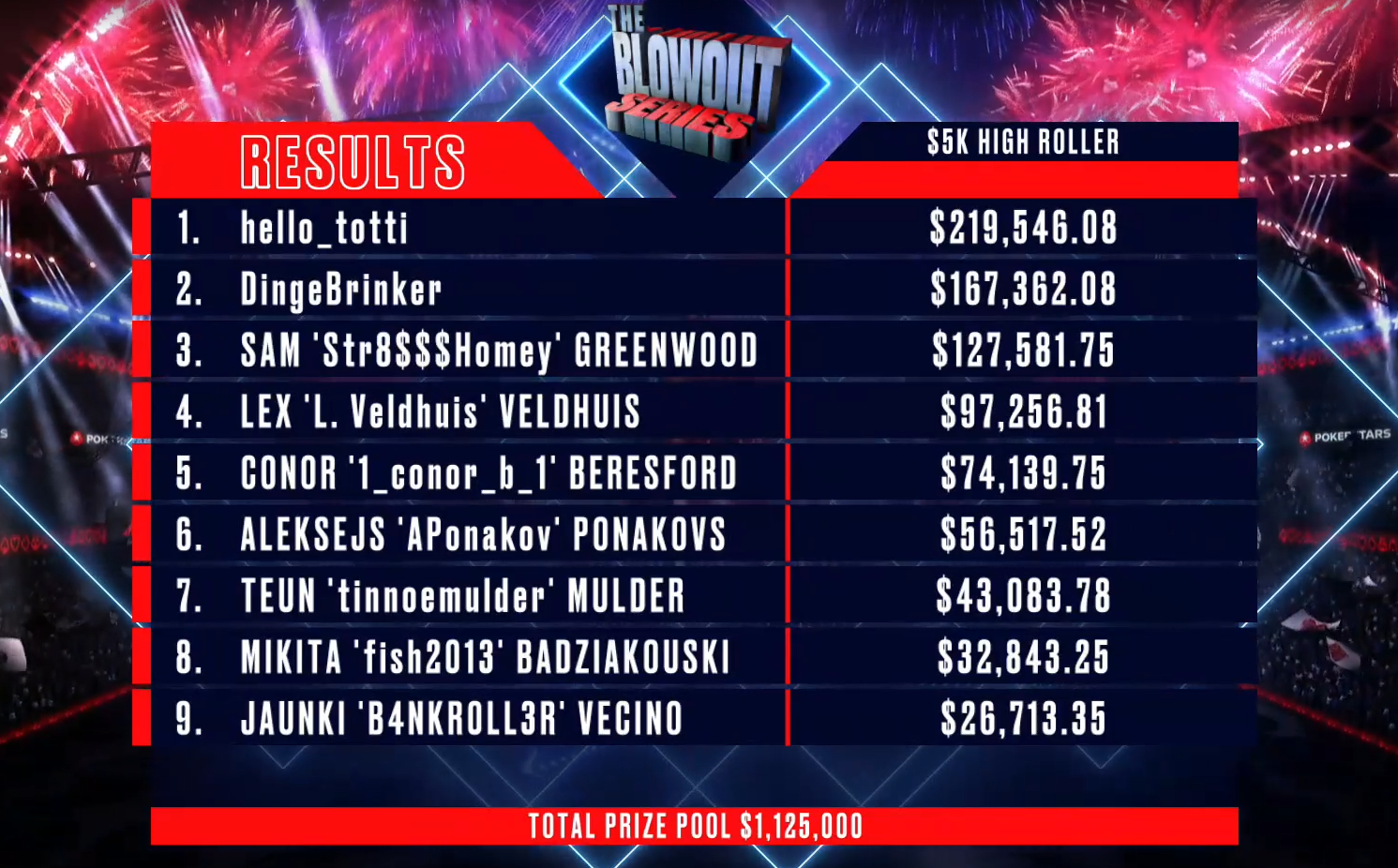 Турнир был примечателен не только большим призовым фондом в $1.125.000, но и звездным составом участников финалки. Так, из девятки игроков финального стола только лишь чипак из 🇪🇪 Эстонии под ником DingeBrinker был неизвестным, остальные восемь игроков - топ регуляры и игроки из элитного покерного эшелона.