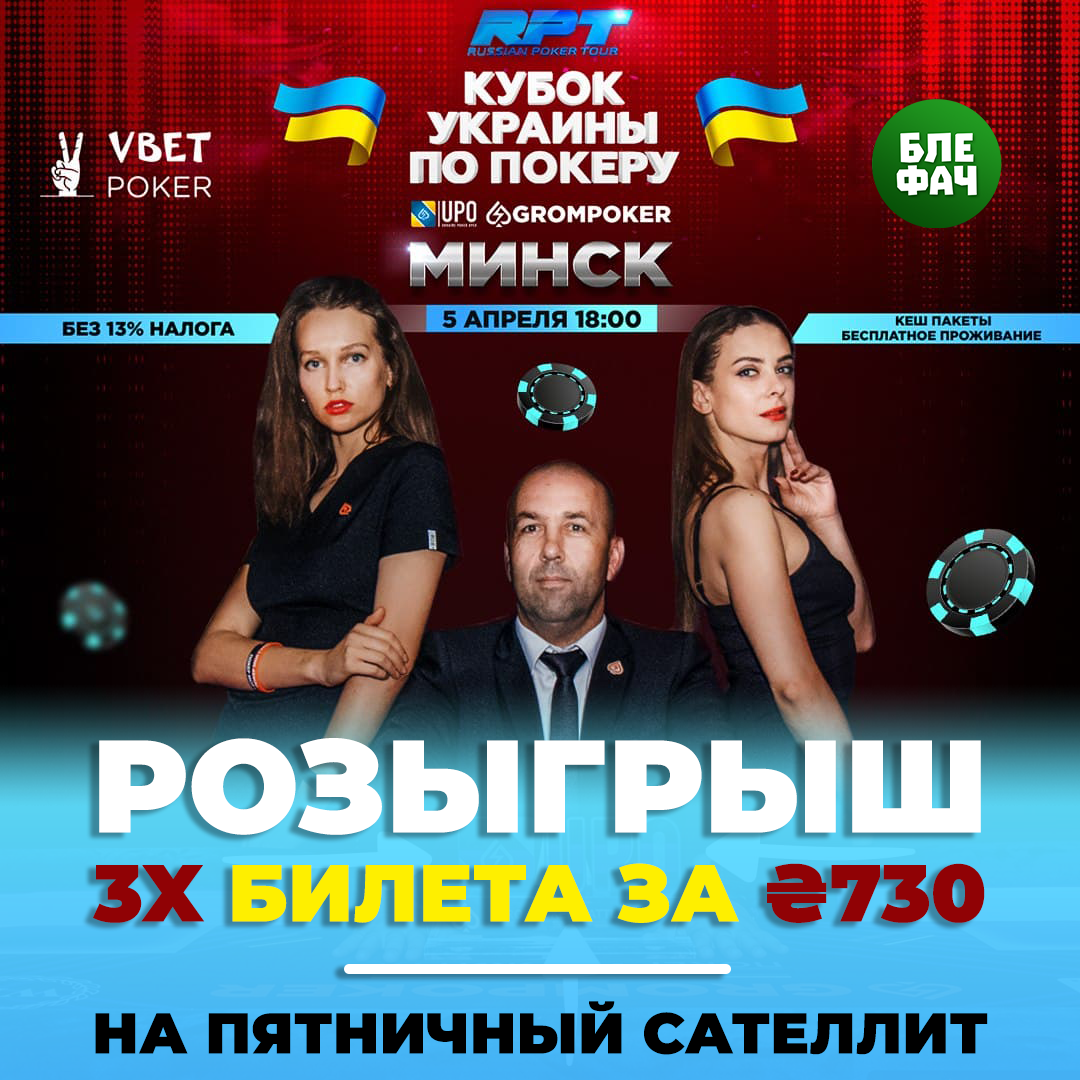 Блефач | Покер pinned «💥 Розыгрыш! 💥 🔥 Новости новостями, а розыгрыши на Блефаче идут строго по расписанию 👍 Но давайте по порядку - в рамках предстоящей оффлайн-серии VBET RPT в Минске будет проведен титульный турнир Кубок Украины по покеру. Турнир стартует 5 апреля в 19:00…»