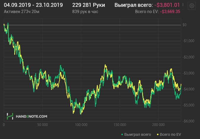 Лично я стримы его не смотрел и не знаю, то ли он дно, то ли диспа ушатала. Факт остаётся фактом — минус $3800 за 229k рук, плюс ещё $2200 должен отдать тем, кто ставил против него. Ну хоть не кинул никого, моё увожение.