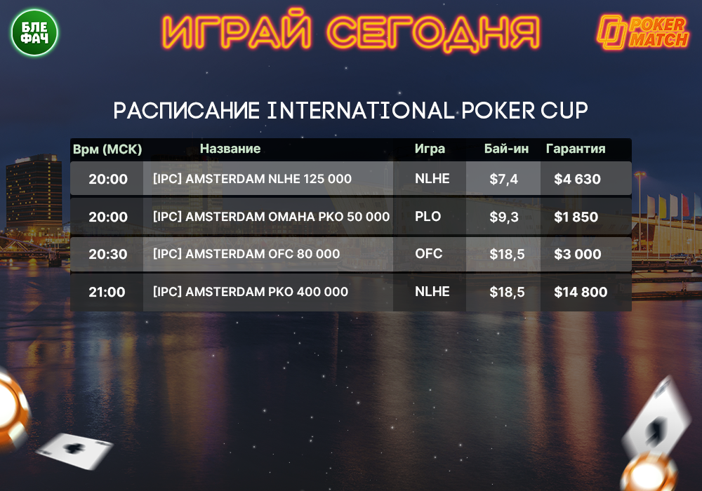 🔥 Город, который никогда не спит... догадались, какой? Разумеется, это Амстердам - именно там сегодня состоятся 4 турнира от Покерматч один слаще другого! Скачивай расписание, выбирай турнир и прыгай в покерную вечеринку.