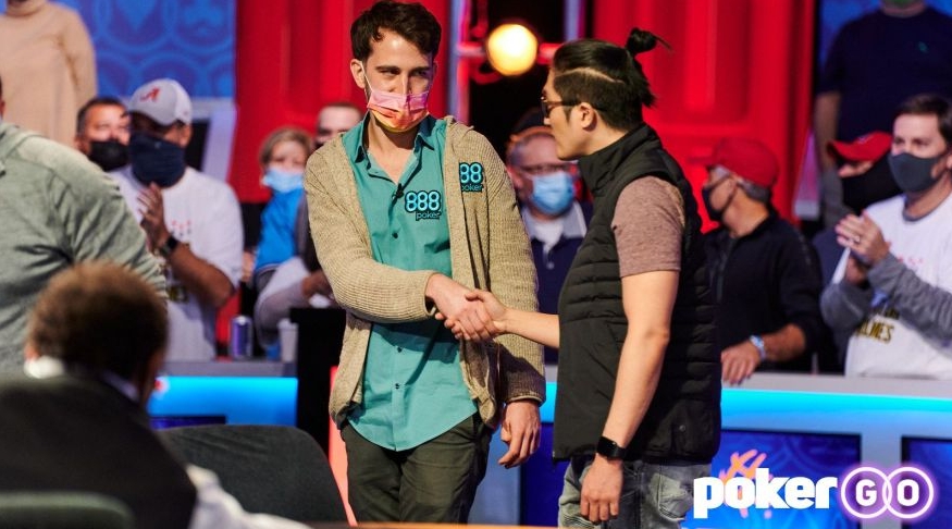 Сегодня утром по Москве завершилось Главное Событие WSOP 2021 в Вегасе - престижнейший титул и $8 млн призовых достались немецкому покер-про Кораю Альдемиру. Несмотря на то, что игра началась в 2 часа ночи на стадии 3-макс, а победитель начал финалку с огромным перевесом над соперниками, поединок продлился более шести часов и подарил всем любителям покера истинное удовольствие от игры.