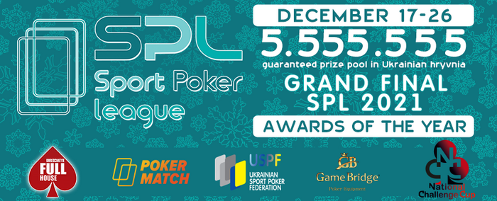 🔥 Гайз, с 17 по 26 декабря в киевском клубе спортивного покера Full House Khreschatyk при поддержке PokerMatch пройдёт серия SPL Grand Final 2021 с гарантированным призовым фондом 5.555.555 гривен. C подробным расписанием серии можете ознакомиться тут.
