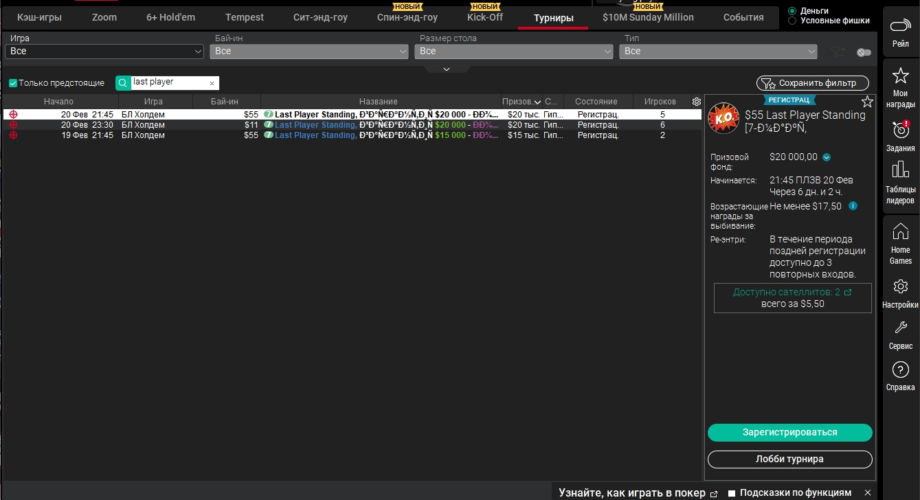 • Турниры Last Player Standing проходят по выходным
