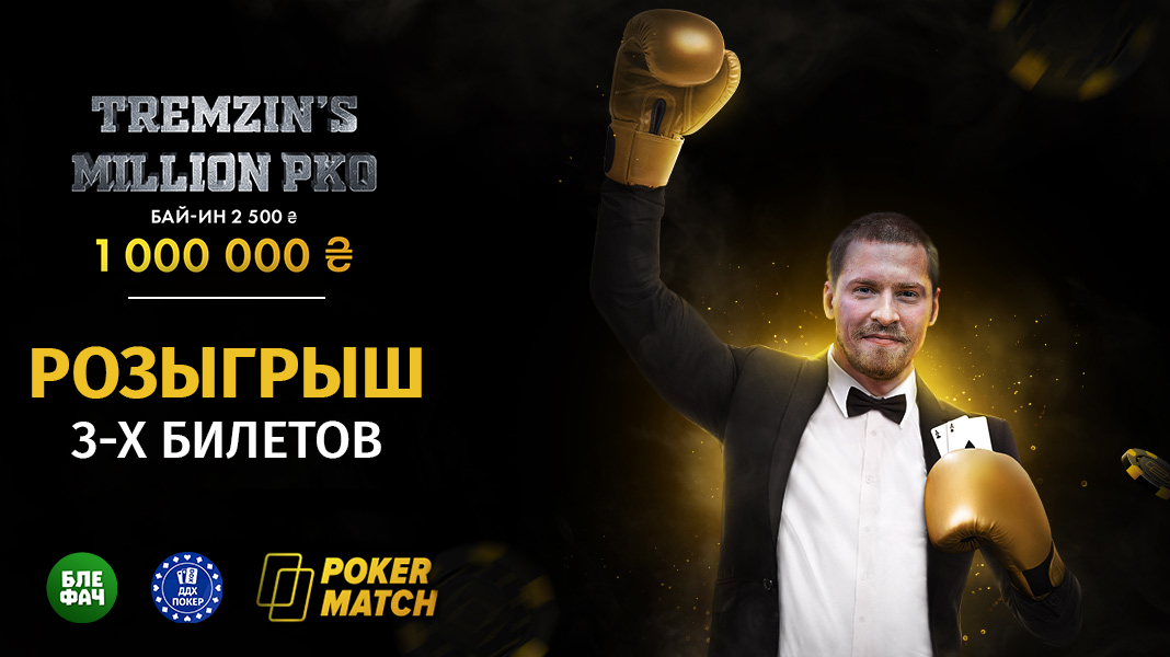 🎟️ А вот на следующий турнир Tremzin's Million PKO 26 февраля вполне можно попасть совершенно бесплатно. Дело в том, что совместно с нашими хорошими друзьями из ДДХ Покер и при поддержке наших генеральных партнёров рума Покерматч мы разыграем 3 прямых билета по 2500 гривен каждый в именной турнир-миллионник Глеба Тремзина.