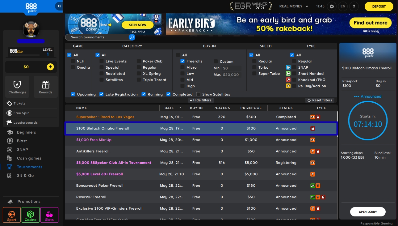 🔥 Сегодня, 24 мая в 18:00 МСК на 888poker стартует бесплатный турнир с призовым фондом $100. Вкратце пройдёмся по ключевой инфе: