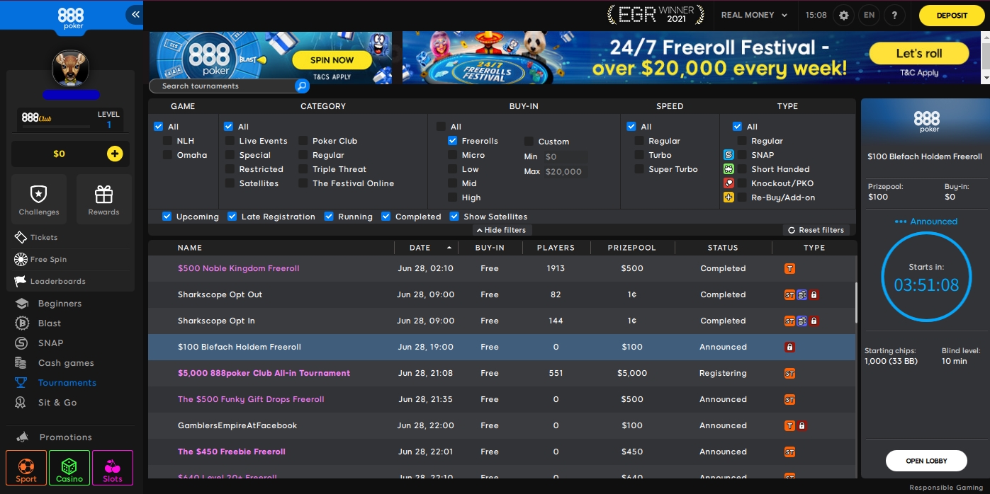 🔥 Сегодня, 28 июня в 18:00 МСК на 888poker стартует бесплатный турнир с призовым фондом $100. Вкратце пройдёмся по ключевой инфе: