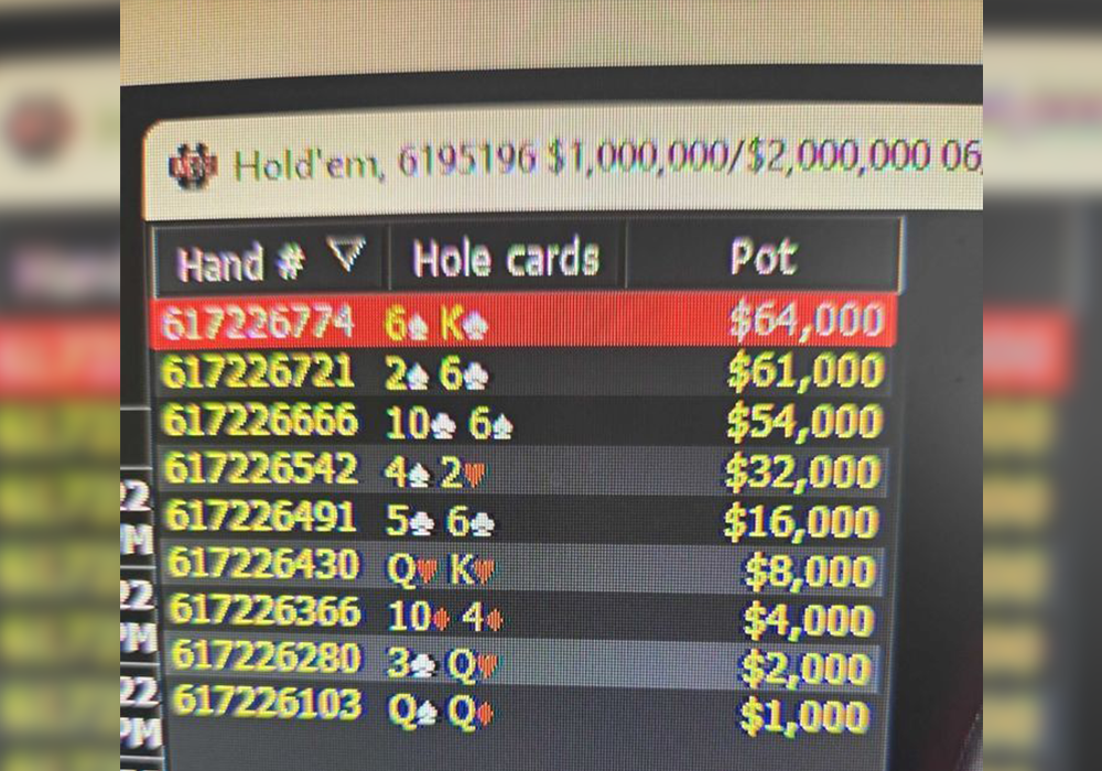 🙀 Из истории рук видно, что Гольдштайн затащил подряд 9 оллинов, начав победную серию с карманных дам и закончив с K6o. Скрин истории прикрепили к посту.