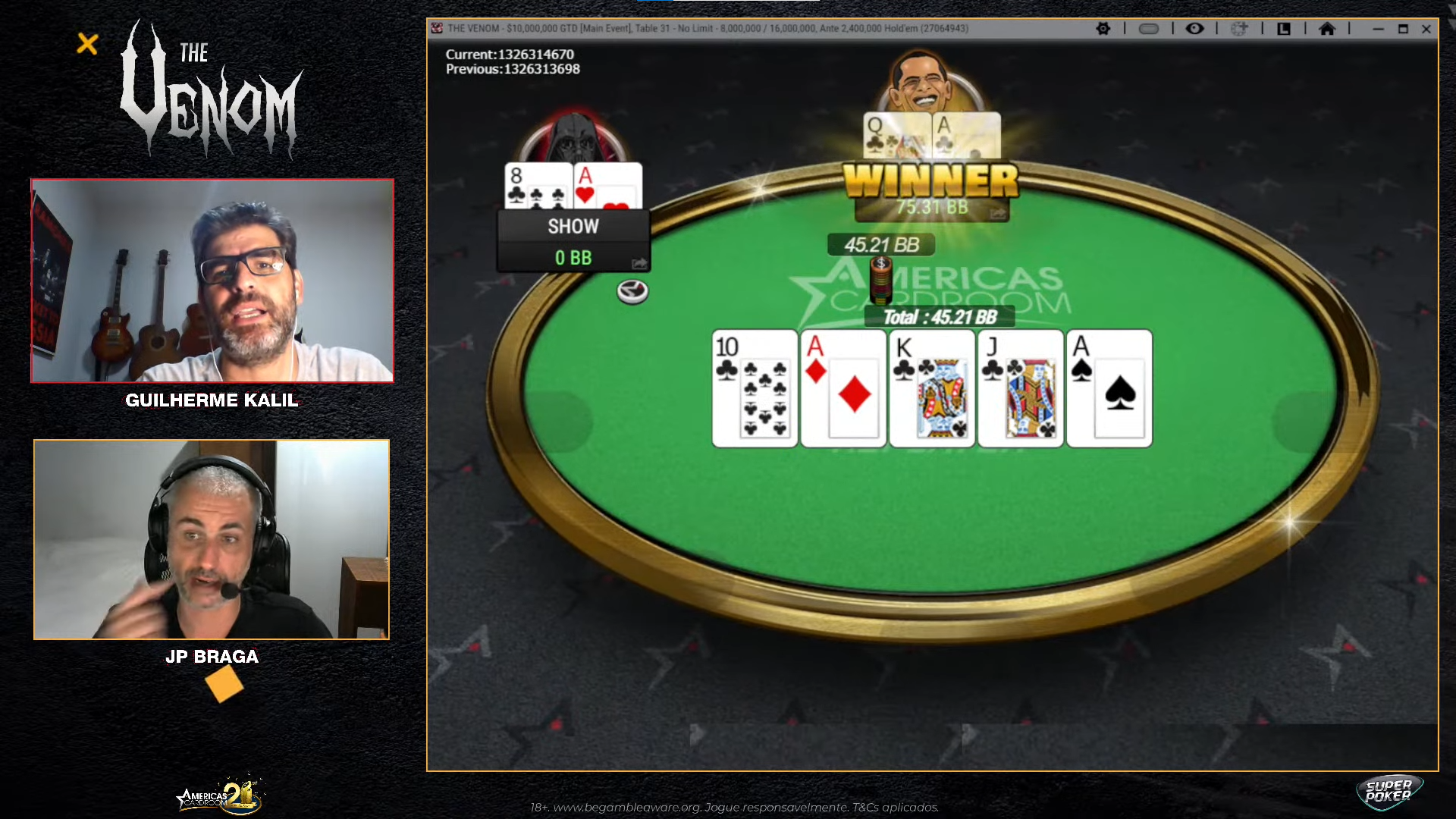 ⚔️ В хедз-апе сошлись 🇧🇷 Луиджи «G26» Сончин (105 ББ) и 🇦🇷 manuma29 (43 ББ). Битва была равная, никто не хотел уступать пей-джамп почти в $300K. После долгих-долгих качелей аргентинцу улыбнулась удача, и он таки одолел бразильца, несмотря на то, что всю финалку казалось, что победа за Луиджи.