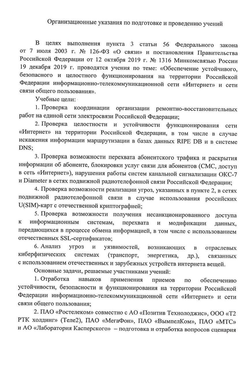 В учениях будут участвовать крупные операторы: Ростелеком, «Мегафон», МТС и «Вымпелком»