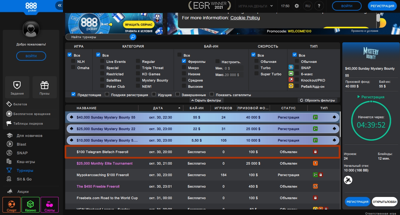 🗝️ Чтобы узнать пароль на турнир $100 Telegram Blefach Freeroll с гарантией $100 на 888poker, кликните на кнопку "Пароль" под постом.