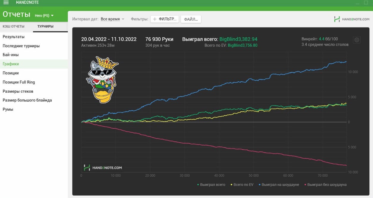 🎁 Специально для подписчиков Блефача мы выбили скидку 10% на первую покупку подписки в Hand2Note. Для этого введите промокод "H2N10KCB" на официальном сайте во время оформления заказа — и получите доступ к безграничной статистике на соперников! Здесь же можно посмотреть видосы и изучить матчасть