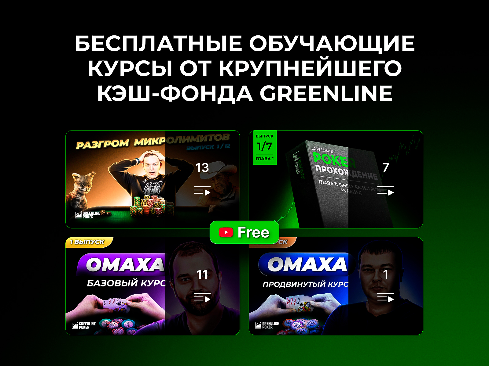 4️⃣ Продвинутый ПРО курс по омахе — он выходит прямо сейчас, и первый выпуск уже доступен на канале GreenLine. Автор — рег PLO1K Константин «kosta_rus». Курс полезен игрокам PLO50-100, которые уже побили низкие лимиты и хотят быстро дойти до мидстейкс