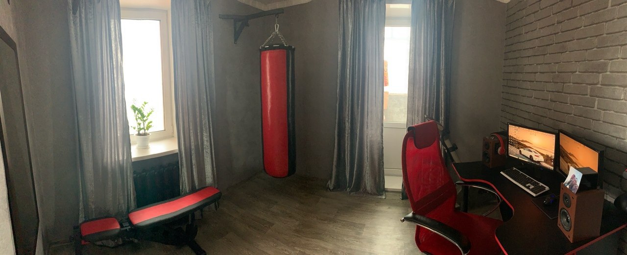 Живёт с женой и ребёнком, но всё же выделил себе отдельную «берлогу» для достижения целей. Выглядит прикольно, респект таким пацанам! 🤘🏼