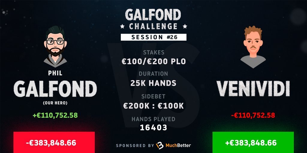 Продолжаю держать страждущих в курсе #GalfondChallenge: 19 марта Фил отыграл ещё €110K и на текущий момент он в минусе на -€383K
