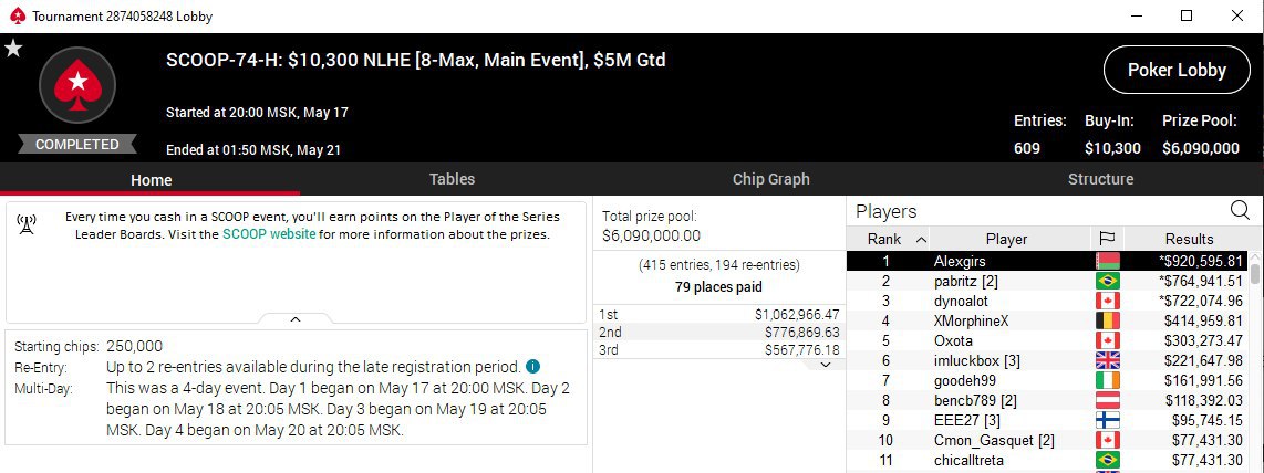 Сегодня вечером состоится финал трёх мейн ивентов SCOOP, в двух из которых с хорошими стеками идут молодые реги из Беларуси.