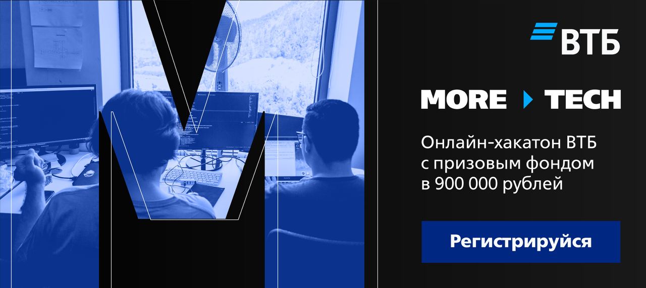 8–11 октября пройдет первый онлайн-хакатон ВТБ More. Tech. Участники смогут выбрать один из двух треков — mobile или web. Приглашаются студенты и специалисты, которые хотят побороться за победу и приобрести крутой опыт.