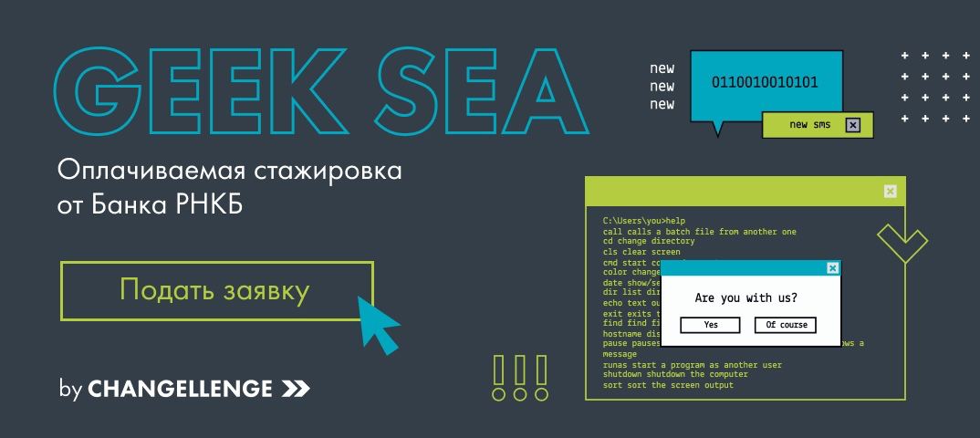 Банк РНКБ ведет набор на оплачиваемую стажировку Geek Sea для IT-специалистов со всей России. Одно из девяти направлений на выбор, проект с IT-задачами бизнеса и ваши смелые решения в одном из самых прогрессивных банков России.