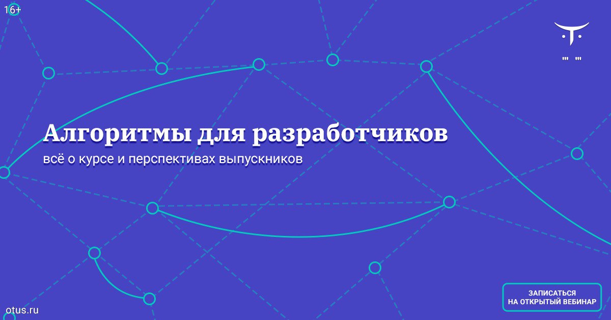 23 апреля в 20:00 пройдет вебинар День открытых дверей по онлайн-курсу «Алгоритмы для разработчиков». Евгений Волосатов расскажет о программе, практике, формате обучения и преимуществах, которые дадут вам новые навыки. Приходите, чтобы задать вопросы и получить первоначальную консультацию преподавателя! Записаться: https://otus.pw/9UL6/