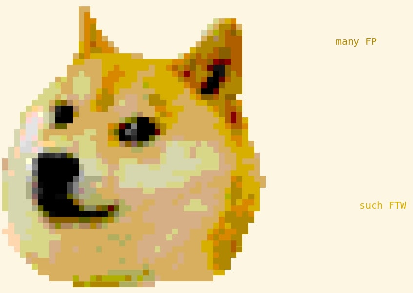 Тесты автор решил понаделать и для рендеринга — чтобы глазами видеть косяки. Тут ему пригодился Emacs, который умеет вставлять картинки прямо в код (ага, как DrRacket). Вот только хранить картинки высокого разрешения рядом с кодом автору не хотелось, тем более что игра предполагалась пиксельная и машинерию рисования стоило тестировать на картинках низкого разрешения. Но Emacs-то картинки сглаживает при растягивании так, что пиксели за мылом не видно! А значит нужно… запатчить Emacs. Под MacOS, напомню. С помощью Nix, конечно же!