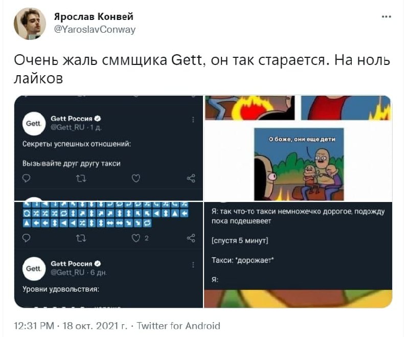 Однако стоило пользователю твиттера поиронизировать над этой ситуаций. И вуаля, его твит завирусился. Аккаунт Gett ожил и наконец появилась активность, а с ней и лайки. Вот она магия соцсетей.