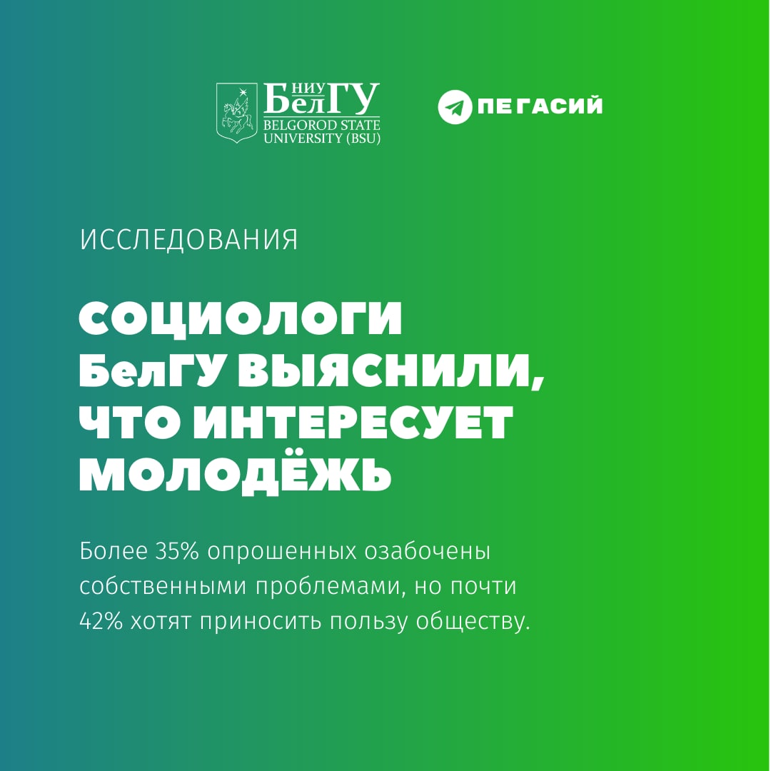 А вот наши социологи провели настоящее исследование о том, чем хочет заниматься молодёжь в регионе. Согласно ему, более 35% опрошенных озабочены исключительно собственными проблемами, но почти 42% хотели бы заниматься общественно-полезной работой.
