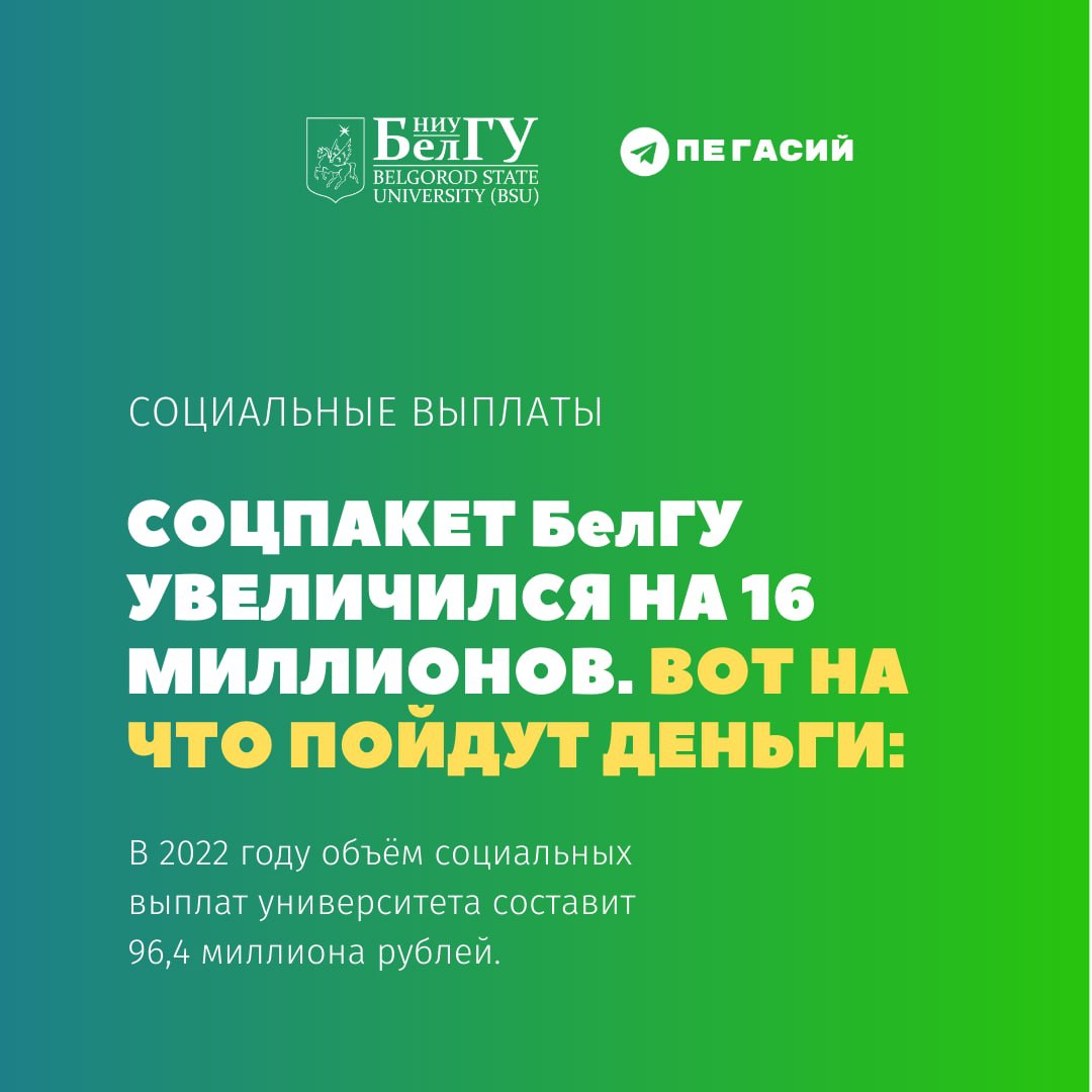 💵 В 2022 году соцпакет БелГУ вырос до 96,4 миллиона рублей. Туть мы детально расписываем, куда пойдут деньги.