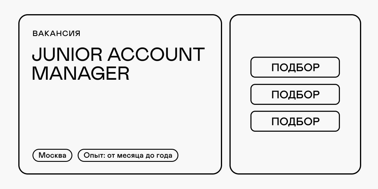 Подбор — платформа, которая помогает рекрутерам находить подходящих кандидатов в IT. Они ищут младшего аккаунт-менеджера.