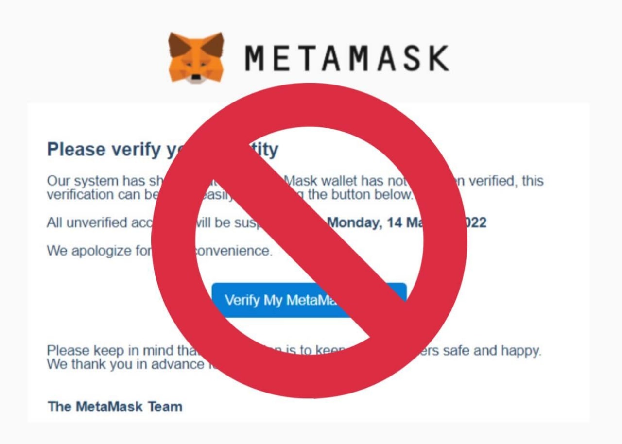 • Пользователю приходит письмо от мошенников, которые представляются командой MetaMask