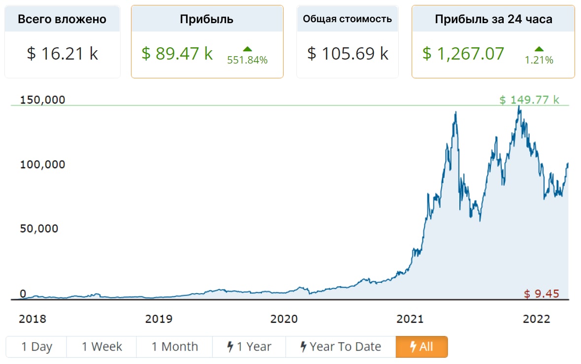 Наш эксперимент это доказывает: мы с октября 2017 года добавляем в портфель «10$ Баффетта» различные криптовалюты каждый день, не ищем идеальные точки входа, не обращаем внимание на новости и долгосрочные падения курса.