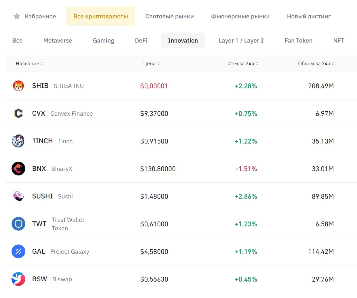 Зона инноваций — это отдельный список токенов, которые не прошли проверку временем и имеют более высокие риски. Зачастую, там находятся DeFi-токены, которые изначально доступны только на DEX и имеют высокую волатильность. Некоторые из них управляются анонимной командой.