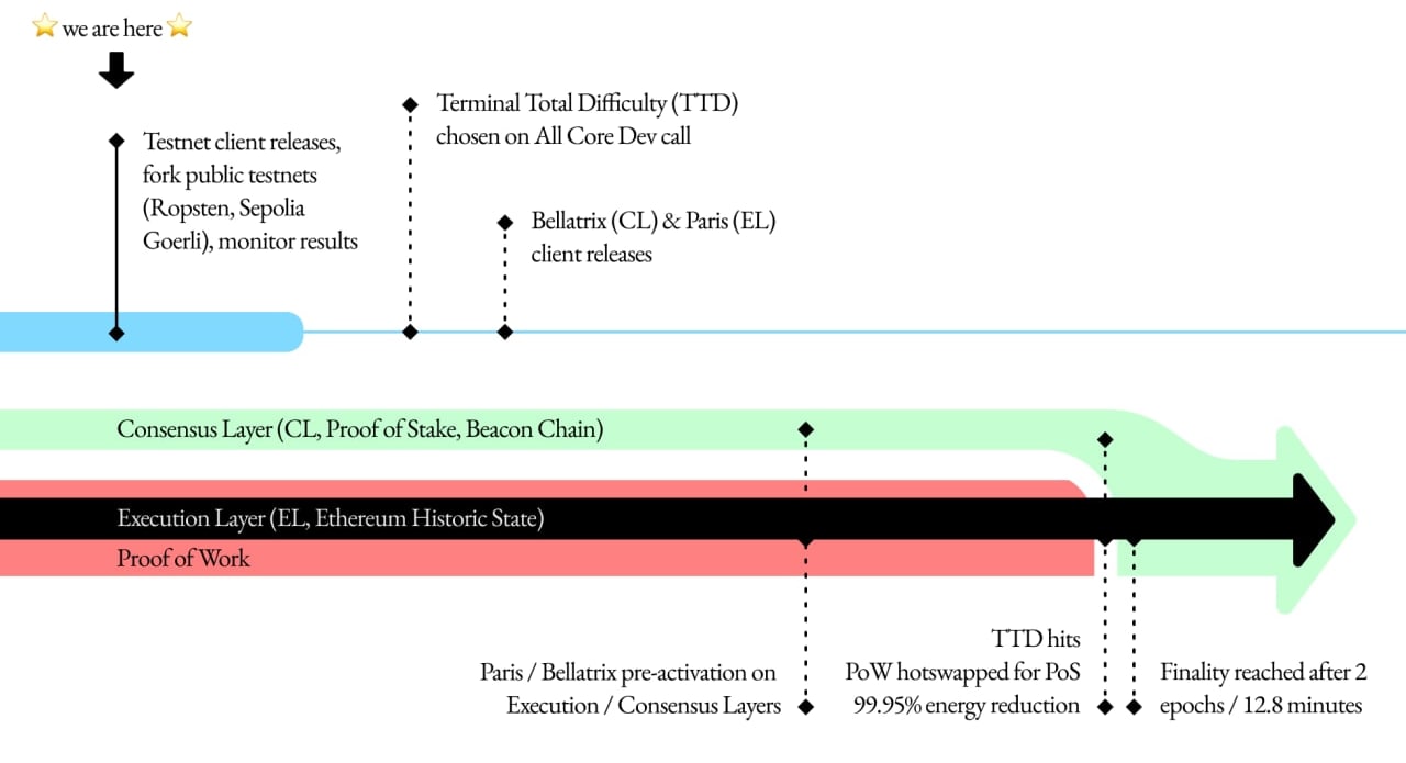Поэтому обновление будут тестировать более чем на 5-ти разных блокчейнах. Если тесты пройдут удачно, то Слияние в основной сети Ethereum произойдёт в 3 квартале 2022 года: