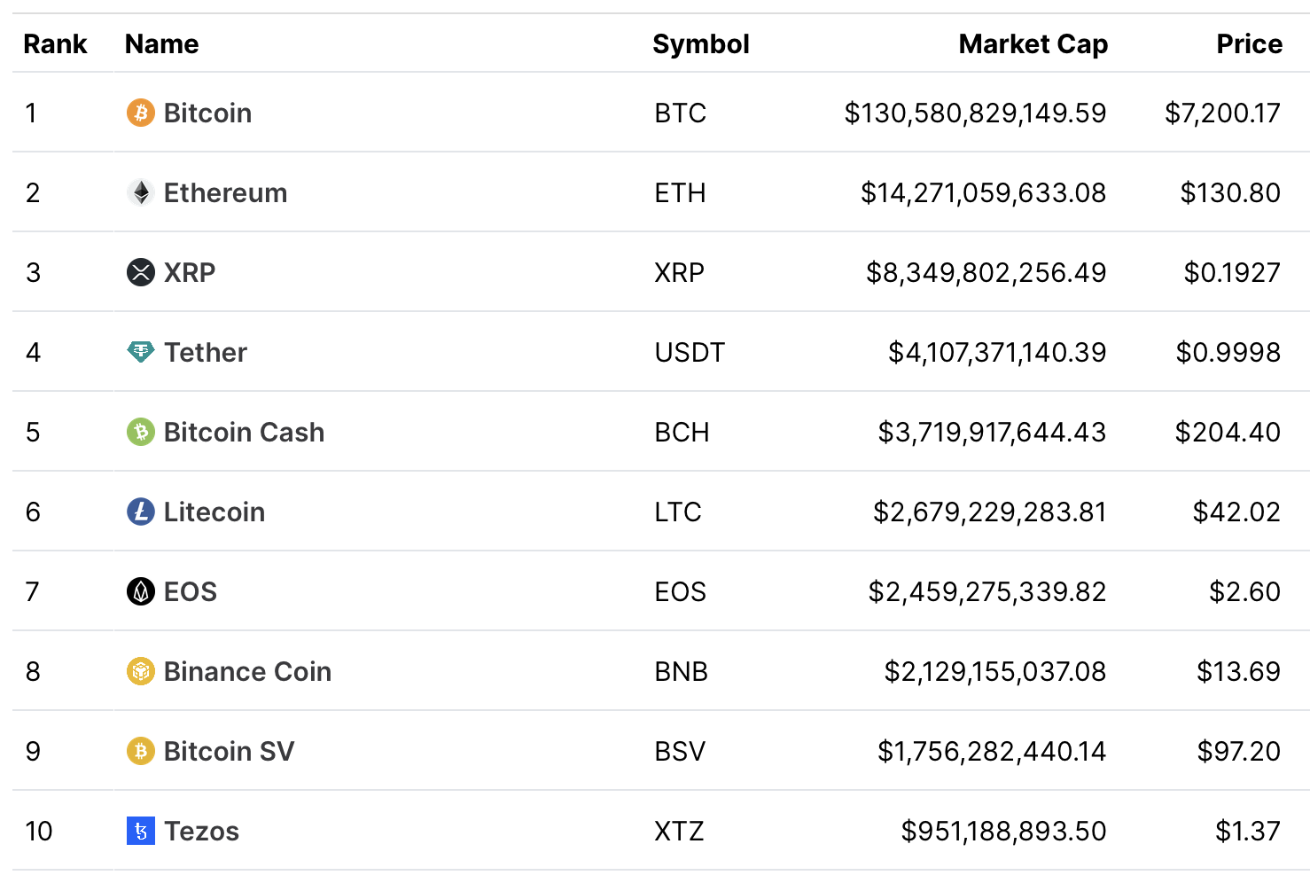 Как выглядел ТОП-10 CoinMarketCap 3 года назад: