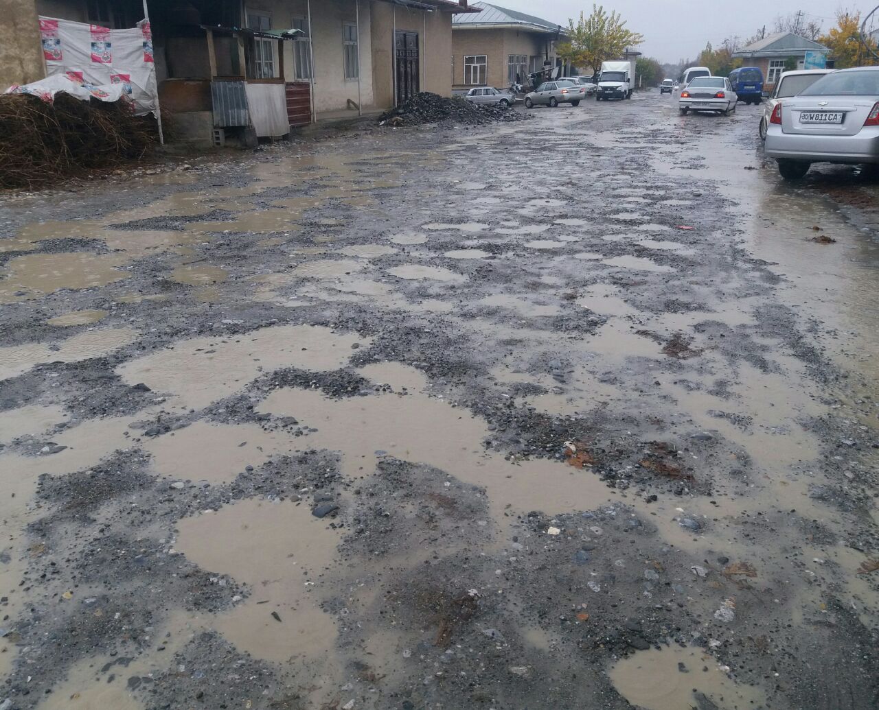 Қўйидаги суратда Ургут-Булунғур йўлининг "Испанза" участкасидаги қисмининг аҳволи. Номига жудаям мос; Тухумкоробка!