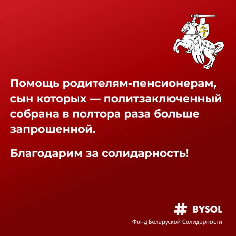 Помощь родителям-пенсионерам, сын которых — политзаключенный собрана в полтора раза больше запрошенной. Благодарим за солидарность!