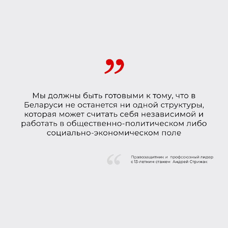 Ситуацию с профсоюзами сайту «Салидарнасць» комментирует Андрей Стрижак, правозащитник, глава Фонда Беларуской Солидарности BYSOL, публикуем фрагмент интервью.