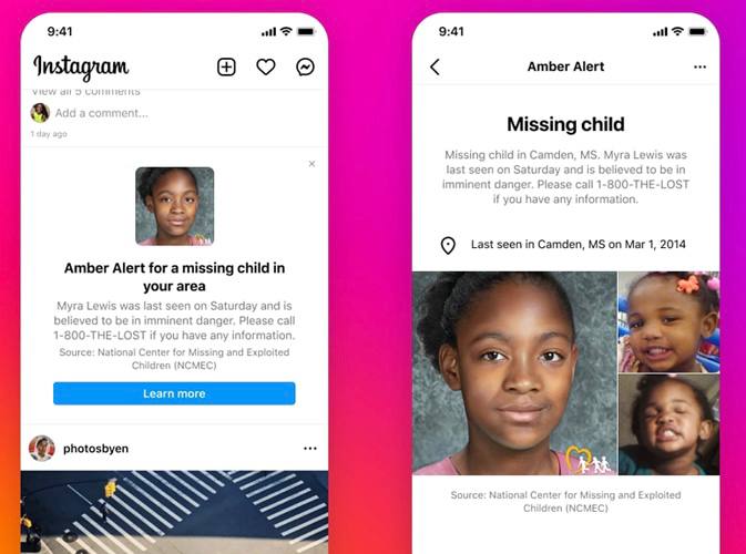 «Мы знаем, что шансы найти пропавшего ребенка увеличиваются, когда на поиски приходит больше людей, особенно в первые несколько часов. С этим обновлением, если правоохранительные органы активируют оповещение AMBER Alert и вы находитесь в указанной области поиска, оповещение теперь появится в вашей ленте Instagram», — сообщает соцсеть.