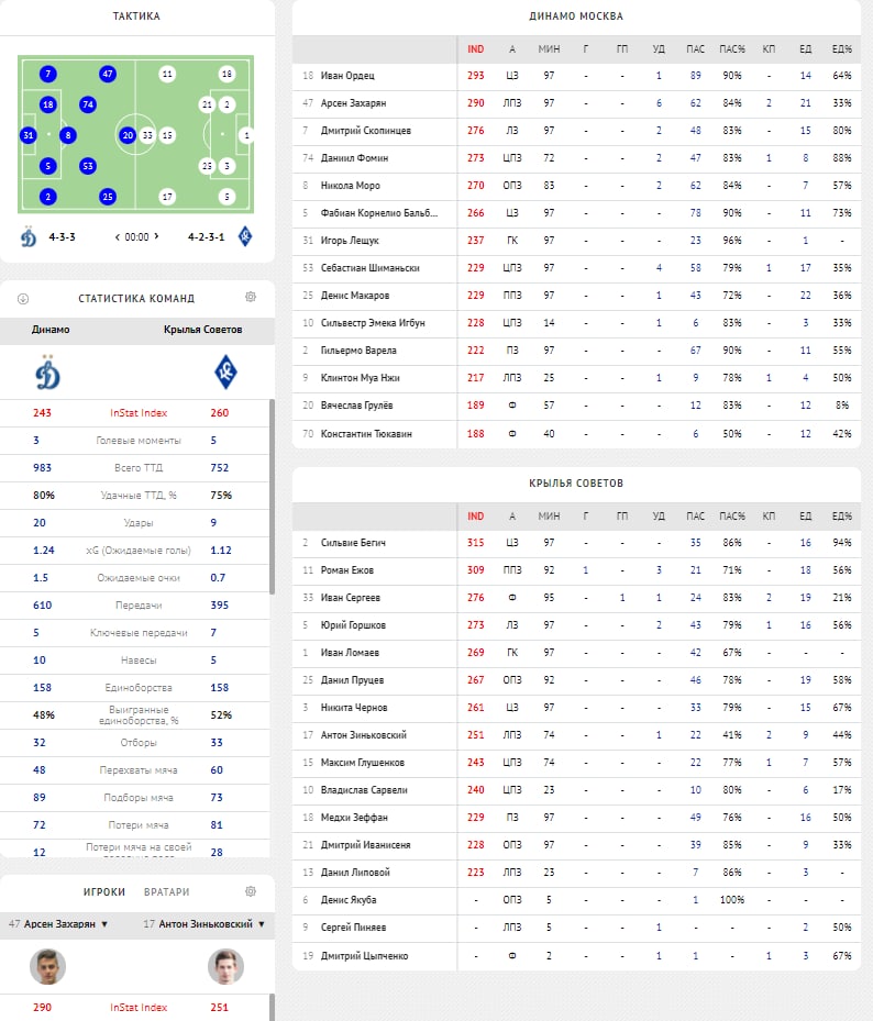Главные цифры по игрокам за первые 6 туров РПЛ от профи из Instat, специально для подписчиков @c_uefa.