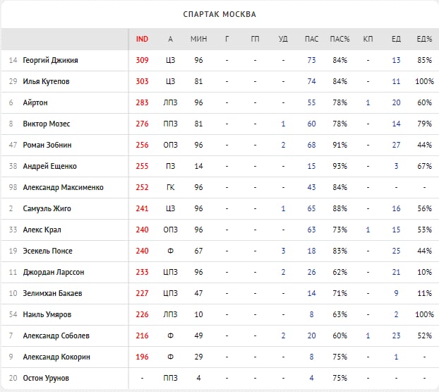 Удивили и замены "Спартака": переход на 4 защитника я приветствую, хотя и странно, зная что Тедеско не тренирует его в течении года, а вот выход Ещенко - сюрприз. Я (со скрипом в сердце) могу понять выход Андрея в конце матча при счёте в пользу "Спартака", чтобы "бицца-бороцца", но какой толк в защитнике, который сделал 5 (ПЯТЬ) навесов в штрафную за 24 матча в такой игре? Так и вышло, что с его появлением, атаки ещё больше сместились на левый фланг - 52 против 38.