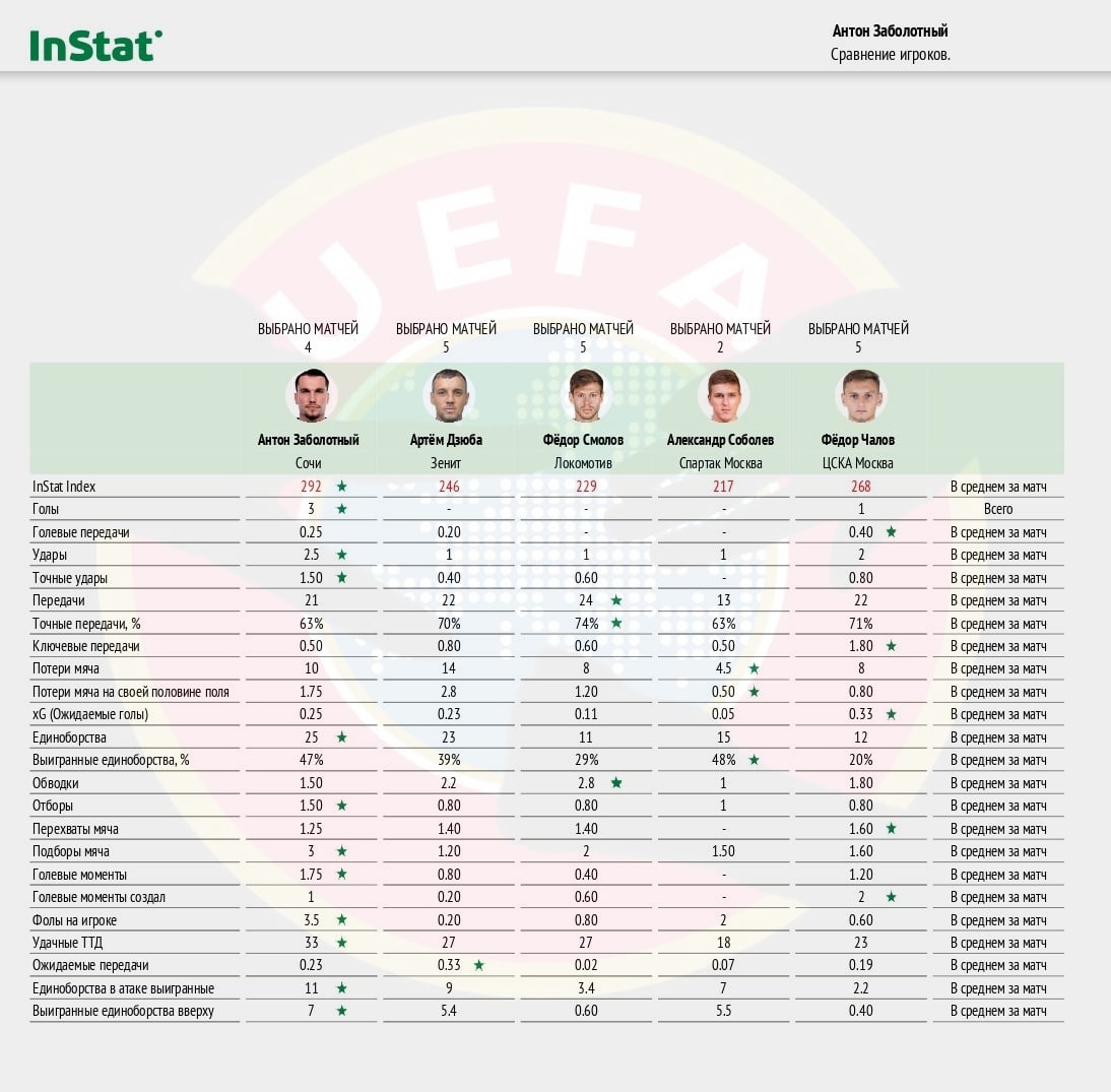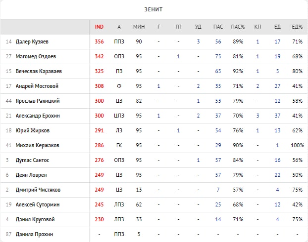 Антон Заболотный ( 356 ) - форвард-мем провёл прекрасный отрезок в октябре, заслуженно попав не только в нашу сборную тура, но ещё и главную сборную РФ. В матче против "Локо" у парня отличная стата: гол+пас, 4 удара, 2 кп, 31 единоборство с 51% выигранных и 3 созданных голевых момента партнёрам. Очуметь)
