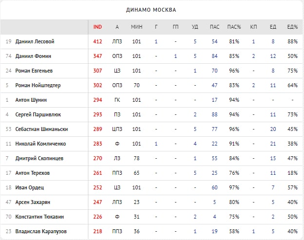 Антон Шунин ( 294 рейтинг Instat) - да, вратарь "Динамо" всю игру провёл без участия в матче, кроме пенальти и ударов то по его воротам не было серьёзных. По факту: Шунин мёрз весь матч под проливным дождём, но отстояв так 100 минут принёс команде победу, отбив пенальти. Рыжиков имеет больший рейтинг, чем Антон, но надо иногда вносить "коррективы", а Сергей будет вторым.