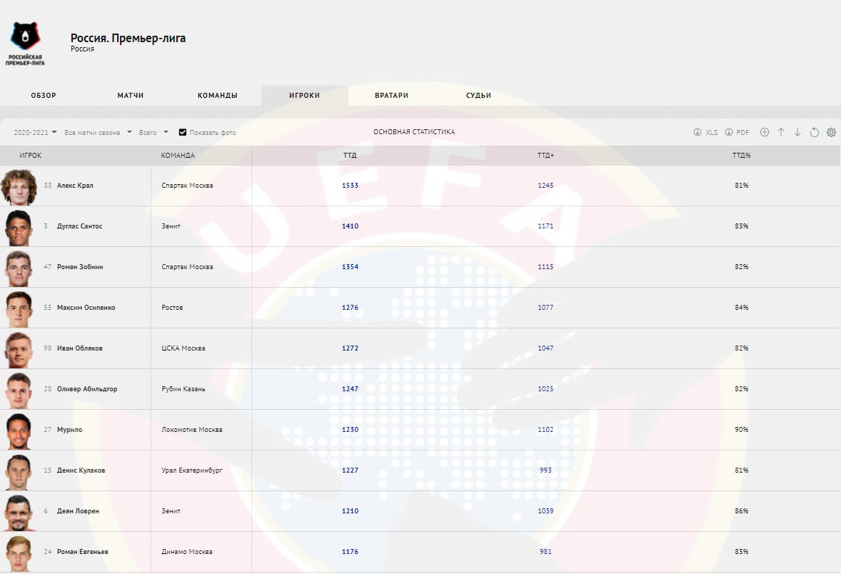 У него не только больше всех ТТД на поле, но и больше всех удачных, т.е. он абсолютно лучший среди всех игроков РПЛ.